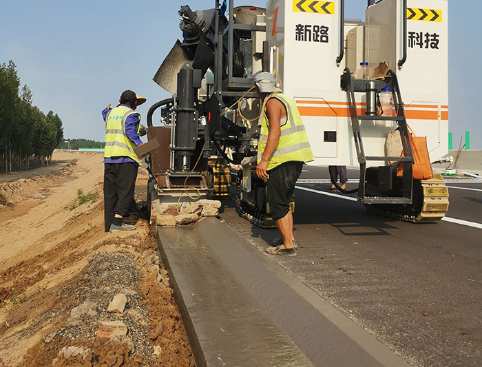 新路緣經營范圍廣,在集水槽、護坡、擋土墻、邊溝、滑?;炷翑備仚C等行業均有產品,是一個綜合發展的滑模攤鋪機制造商